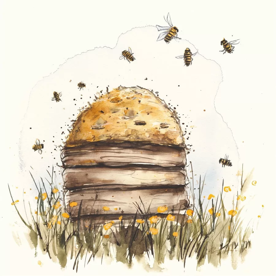 La composición tiene movimiento: la abeja está volando, así que puedes sugerir su camino con un pequeño trazo de sombra bajo su cuerpo, en el campo. Eso hará que parezca más flotando. Puedes usar un lápiz gris o marrón muy suave.