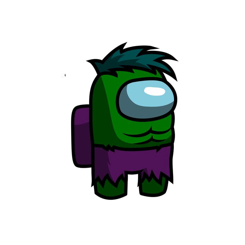 Comienza coloreando el cuerpo de la figura Among Us en verde, que representará la piel del Increíble Hulk. Puedes variar la intensidad del verde para crear sombras y resaltar la musculatura del personaje. Añade el característico morado en la ropa o la ropa rota del Increíble Hulk, como su pantalón rasgado.