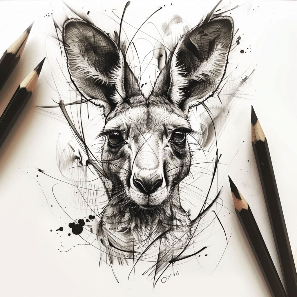 Su cara es intrigante, con ojos grandes y expresivos. Usa colores oscuros para los ojos, dejando un pequeño punto blanco para reflejar la luz y darles vida. La nariz suele ser oscura, casi negra, así que asegúrate de destacarla. La expresión general de un canguro puede variar desde curiosa hasta vigilante, lo que ofrece una excelente oportunidad para practicar la captura de emociones a través del dibujo.
