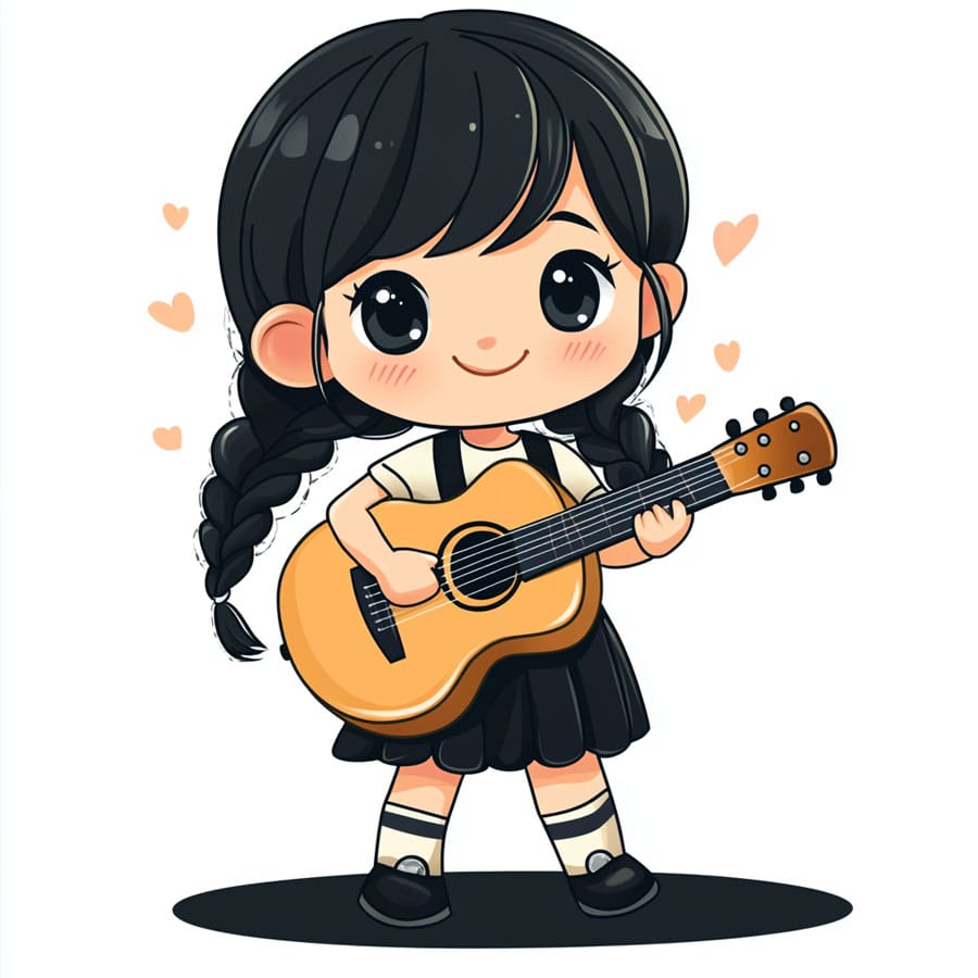 Finalmente, alrededor de la niña hay notas musicales y estrellitas. Puedes colorearlas en tonos que representen la música que imaginas que canta, como dorado, amarillo, o incluso arcoíris para que reflejen la emoción y energía de la música. ¡Recuerda que cada color que elijas puede expresar algo especial de la canción que está interpretando!