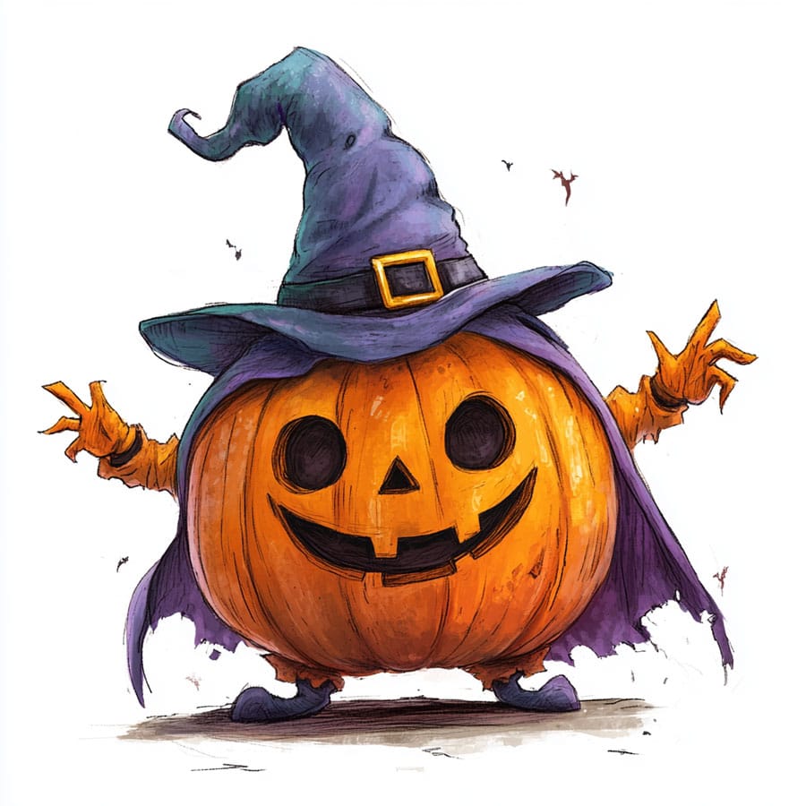 Elementos Mágicos: Colorea los elementos decorativos, como la calabaza, la escoba y el sombrero de bruja, con tonos llamativos y contrastantes. Añade nuevos elementos en el dibujo