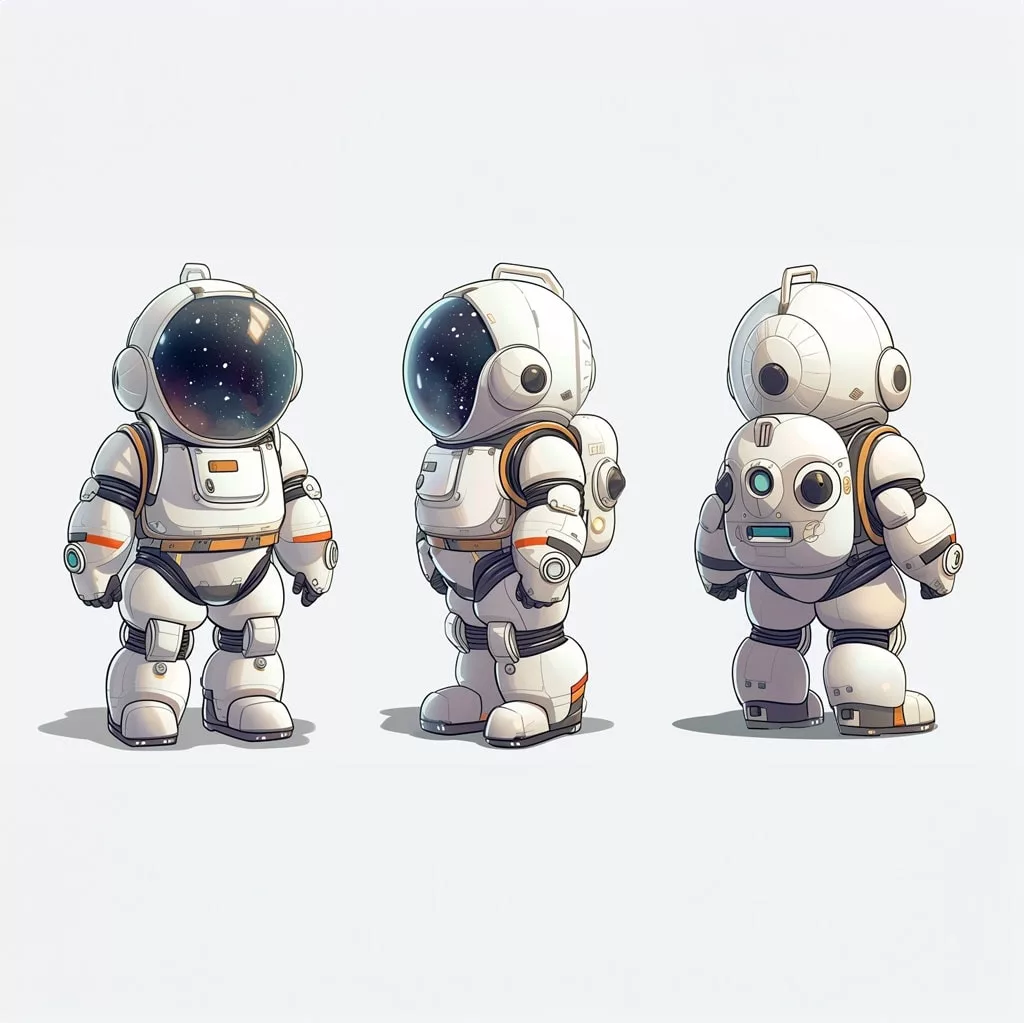 Por otro lado, los trajes espaciales están llenos de pliegues, botones, tubos y estructuras técnicas. Aquí se puede trabajar la textura y el volumen, usando sombras suaves para dar sensación de profundidad. El casco, por ejemplo, refleja el entorno: ¿qué se vería en ese reflejo? ¿Se atreverá quien colorea a dibujar su propia Tierra en miniatura, lejana?