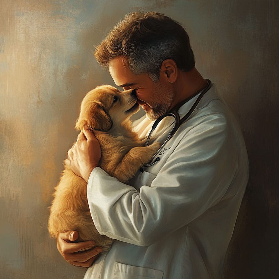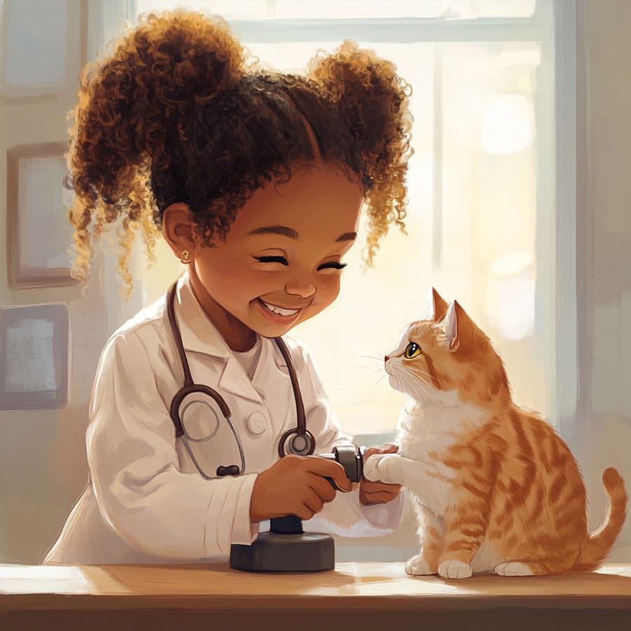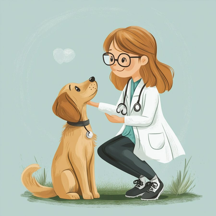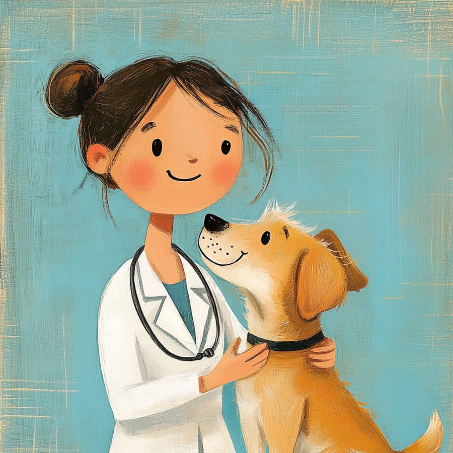 •Fondo: Si te animas, podrías agregar un fondo para hacer la escena más realista. Quizás un consultorio veterinario, con una mesa, una ventana o algunos dibujos de huesitos y huellas de animales.
