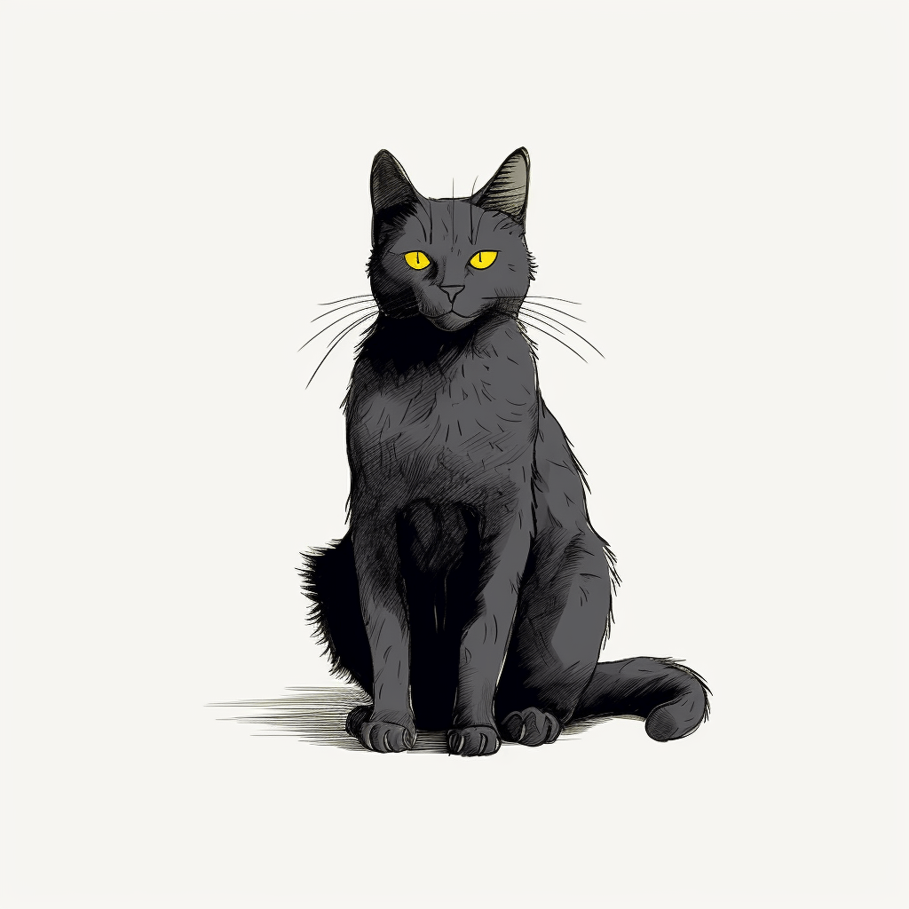 Gato 3: Los gatos negros a veces se asocian con la suerte. En algunos lugares se consideran un buen presagio, mientras que en otros, un signo de mala suerte. Pero en realidad, son tan amorosos como los demás. Usa un negro profundo para colorearlo y añade algunos reflejos en su pelaje con un lápiz gris claro.