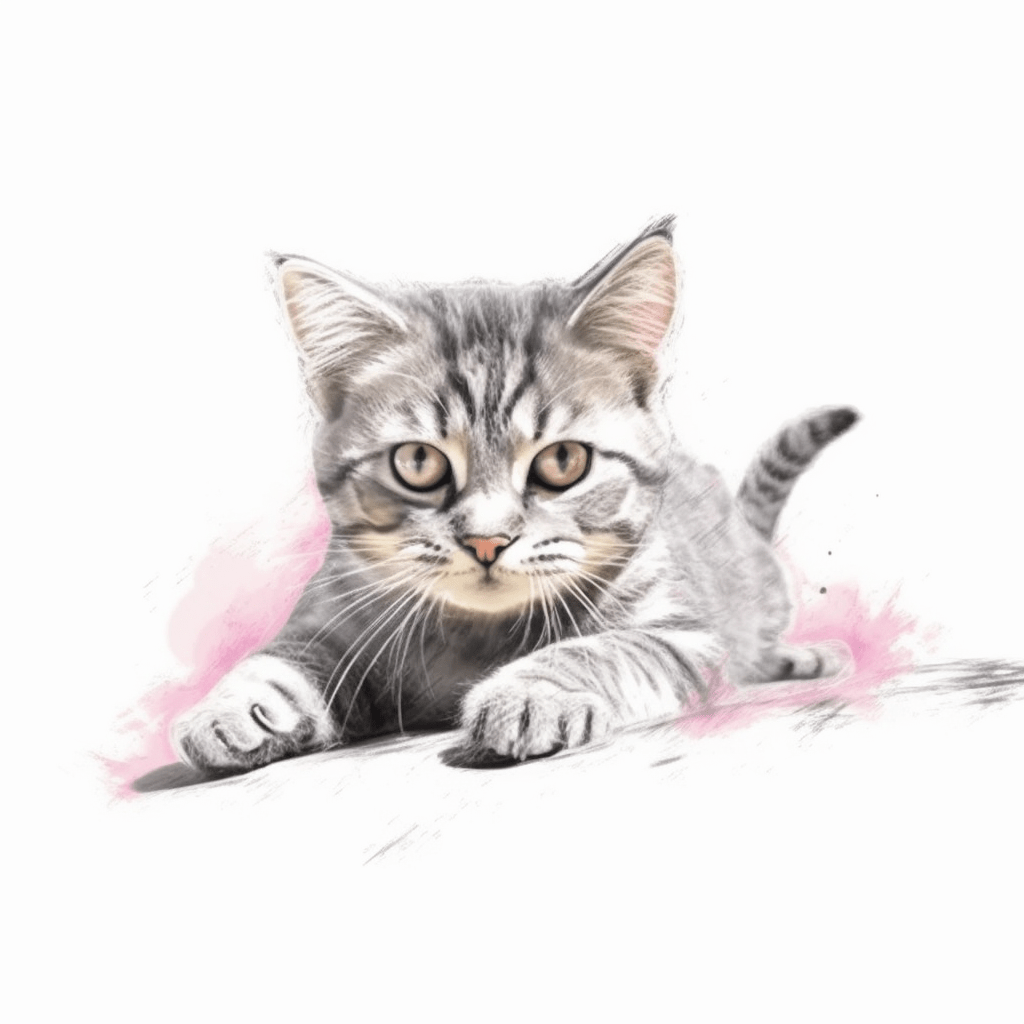 Gato 4: Por último, coloreemos uno de color gris. Los gatos grises pueden tener diferentes tonos, así que puedes jugar con grises claros y oscuros para darle profundidad a su pelaje. A veces, estas mascotas tienen un pelaje que parece suave como las nubes.