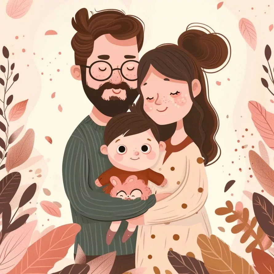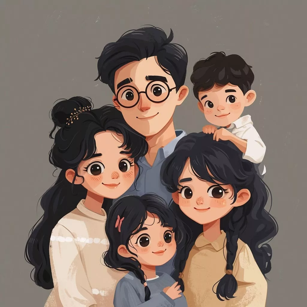 Una familia es un grupo de personas que se cuidan, se quieren y se apoyan mutuamente. En nuestro dibujo, hay una familia con mamá, papá y tres niños, pero recuerda, las familias pueden ser de muchas formas y tamaños. Algunas tienen un solo papá o una sola mamá, otras tienen dos mamás o dos papás, y algunas están formadas por abuelitos, tíos, o amigos muy cercanos.