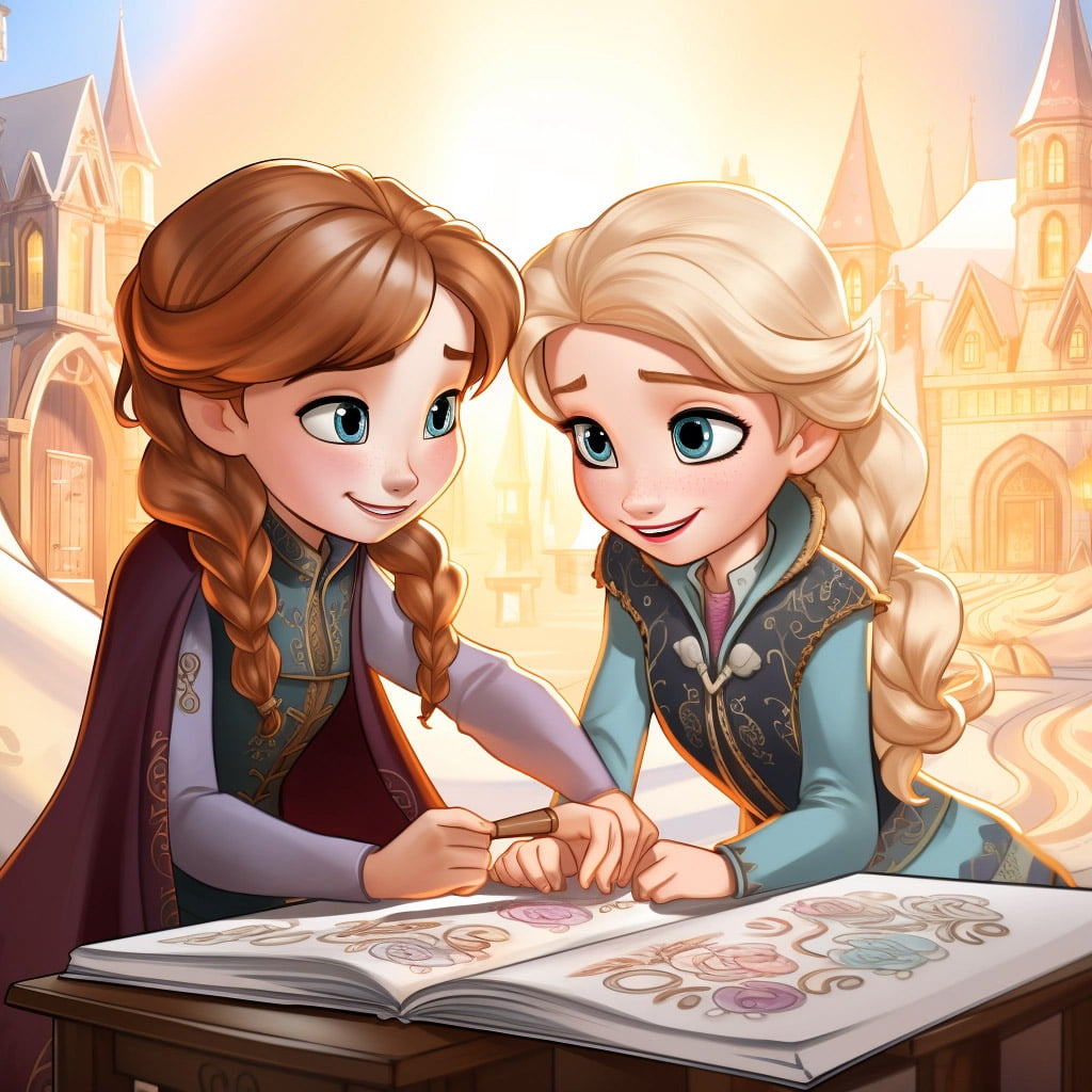 El vestido de Anna puede ser verde en la falda y negro en el corpiño, con detalles en dorado o amarillo. Su capa es de un rosa magenta, que puedes sombrear con colores más oscuros para darle profundidad. Su cabello es rojo, pero asegúrate de agregarle algunas sombras más oscuras para dar la sensación de volumen. Y, por supuesto, no te olvides de las pecas; usa un tono marrón claro para añadirlas suavemente en su rostro.