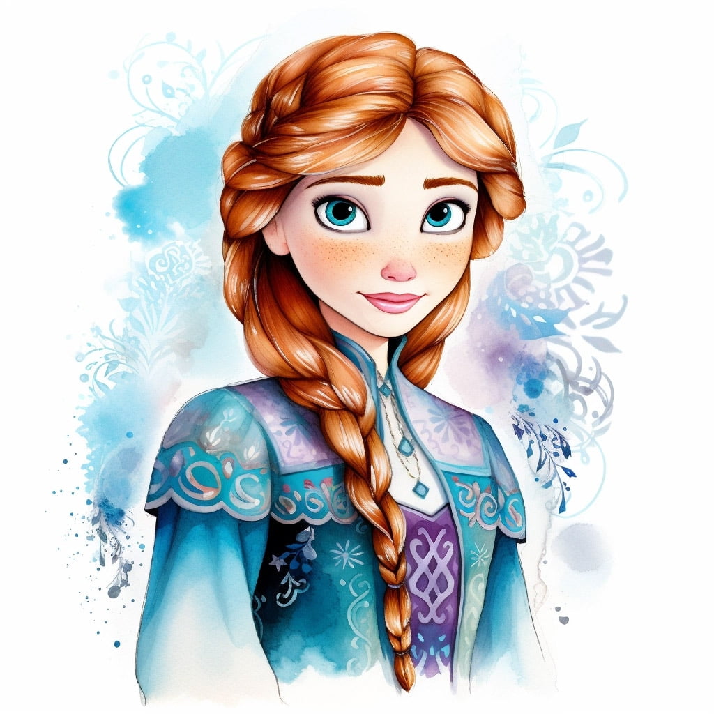 Elsa: Elsa es especial porque tiene poderes mágicos que le permiten crear hielo y nieve. Su vestido es de un azul muy claro, casi como el hielo, y su capa parece hecha de copos de nieve, así que usa un azul más claro o incluso un poco de purpurina para que brille. Su cabello es rubio, casi blanco, así que coloréalo con mucho cuidado para que se vea bonito.