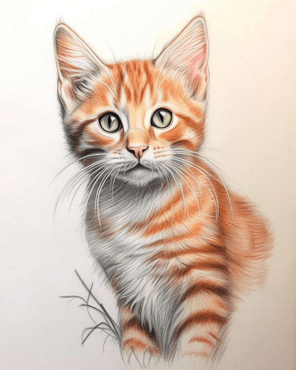 1️⃣ El pelaje de los gatos: Si quieres que parezcan gatos naranjas, empieza con una base de amarillo claro y luego agrega tonos anaranjados y marrones con trazos cortos y finos para imitar la textura del pelo. Si prefieres gatos grises o negros, usa lápices en distintas tonalidades de gris y negro, aplicando capas poco a poco para evitar que se vean demasiado planos.