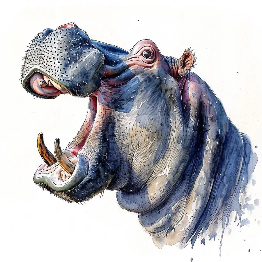 •Curiosidad divertida: ¡Los hipopótamos pueden abrir su boca casi a 180 grados! Y aunque parecen torpes, pueden correr sorprendentemente rápido, incluso más rápido que un ser humano en distancias cortas.
