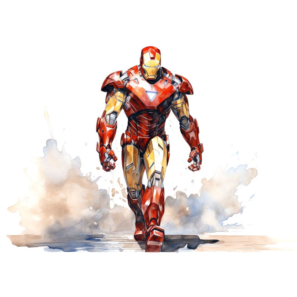 Además, la palabra «IRON MAN» que aparece detrás del personaje es el toque perfecto para jugar con los colores. Un fondo oscuro hará que la armadura destaque aún más, mientras que un degradado cálido puede transmitir esa sensación de energía en pleno combate.