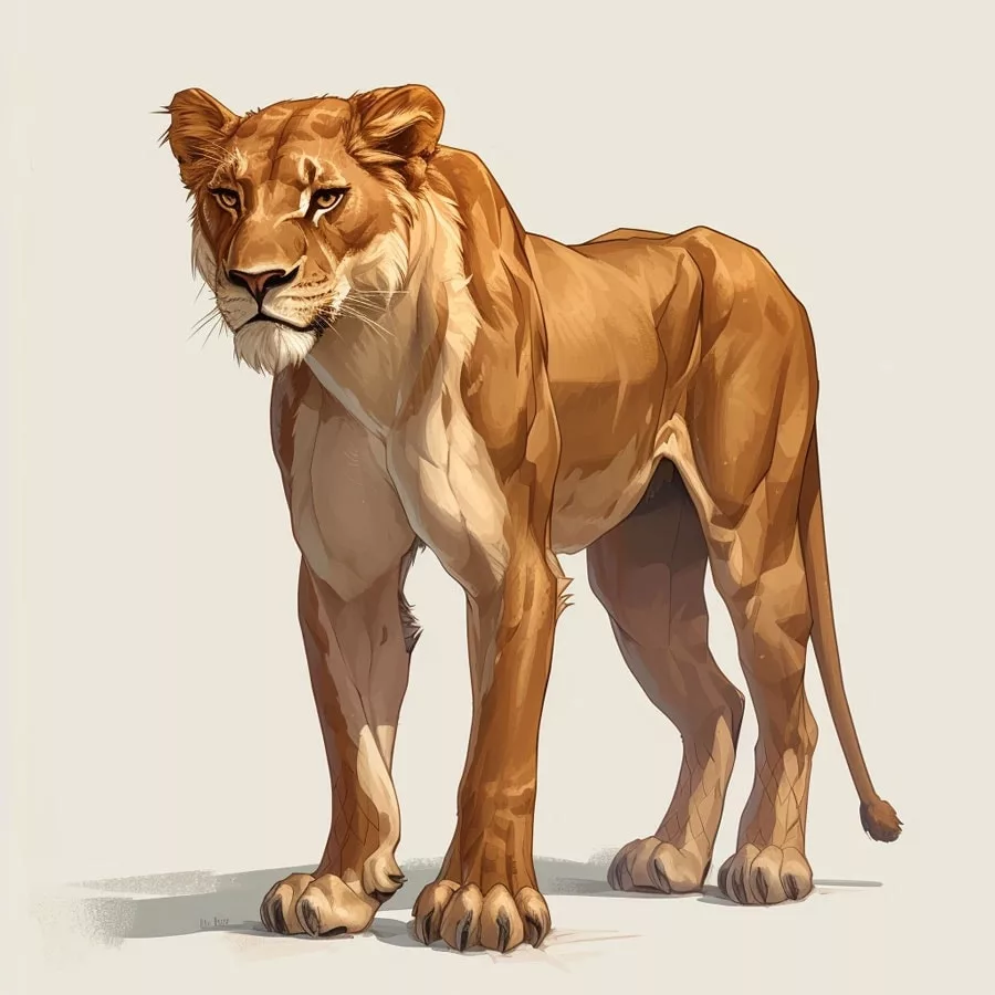 Detalles Faciales y Corporales: Presta especial atención a los ojos, la nariz y la boca. Los ojos de la leona deben transmitir concentración y enfoque, esenciales en la caza. Usa matices de ámbar o dorado para los ojos y negros o marrones oscuros para pupilas y narices.