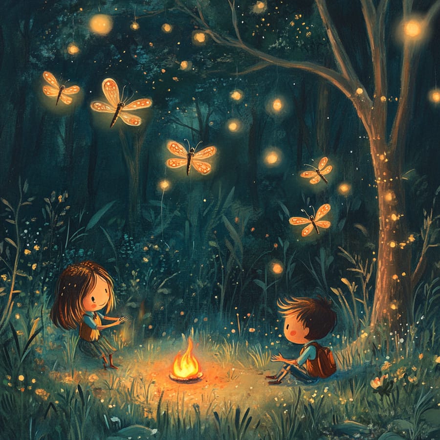 Las luciérnagas salen en la noche iluminando los campos de muchas poblaciones con luces inquietas. En esta ilustración infantil para colorear la luz se representa con un circulo con el contorno rayado en el insecto.