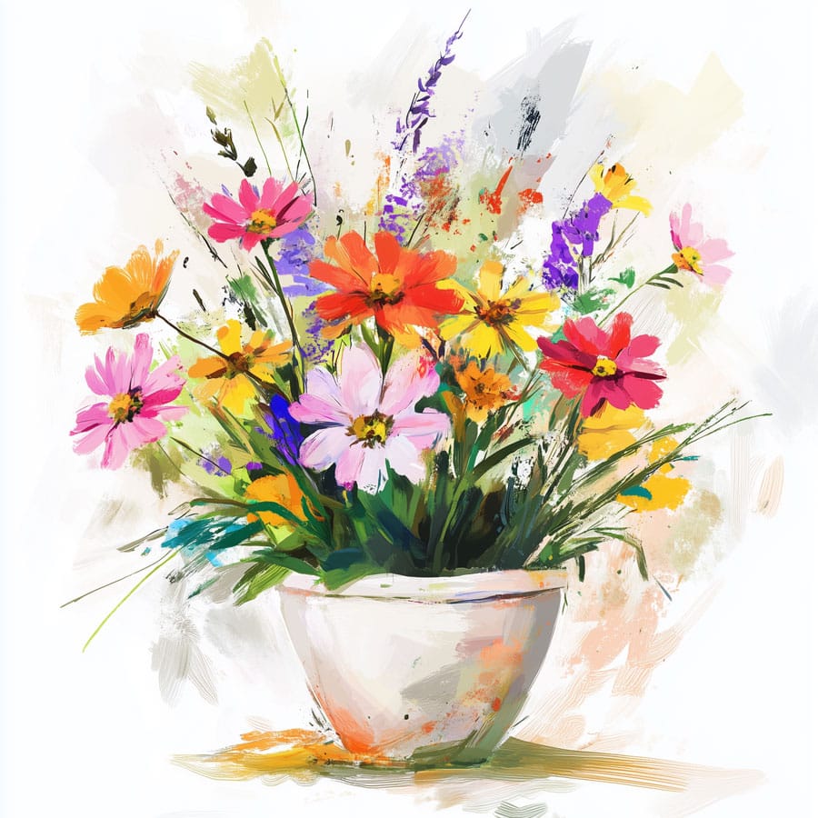 El macetero también es una parte importante de la composición. Puedes optar por colores neutros que resalten las flores o decorarlo con patrones que añadan un toque personalizado al diseño. Las líneas del macetero son suaves, lo que te permite jugar con texturas y efectos para hacerlo más interesante.