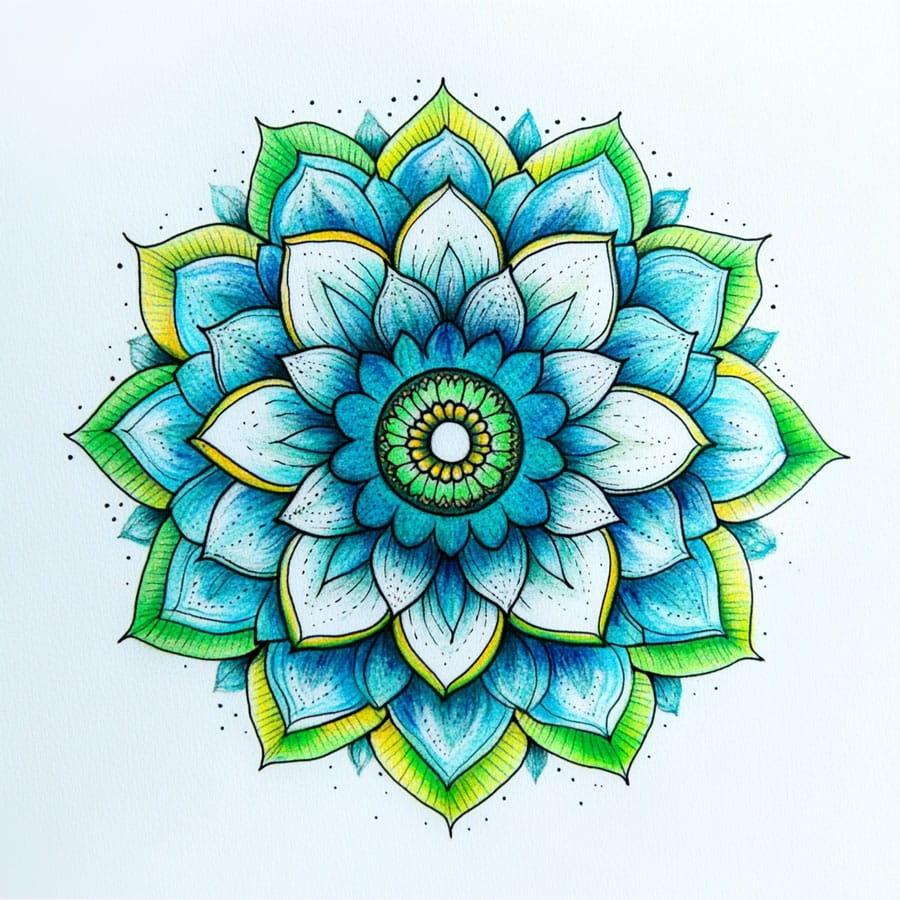 5. Prueba con un fondo: Si te sientes aventurero, puedes añadir un fondo suave en acuarela o con lápices en tonos pastel alrededor del mandala, resaltando aún más los detalles en su interior.