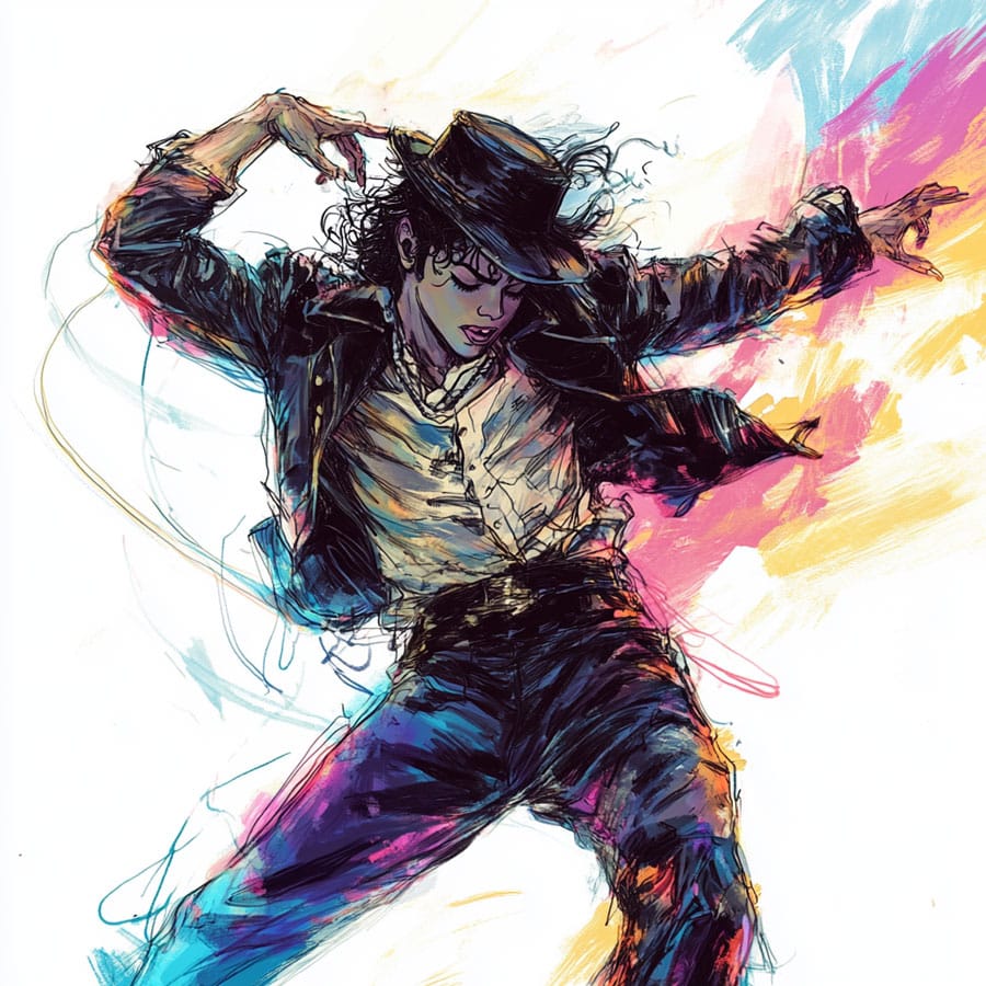 Sus movimientos de baile de figuras como esta han sido estudiados por coreógrafos y fanáticos por igual, intentando replicar los pasos que han marcado la historia de la música pop. Este dibujo es un tributo a esa energía inigualable que solo los verdaderos artistas pueden capturar.