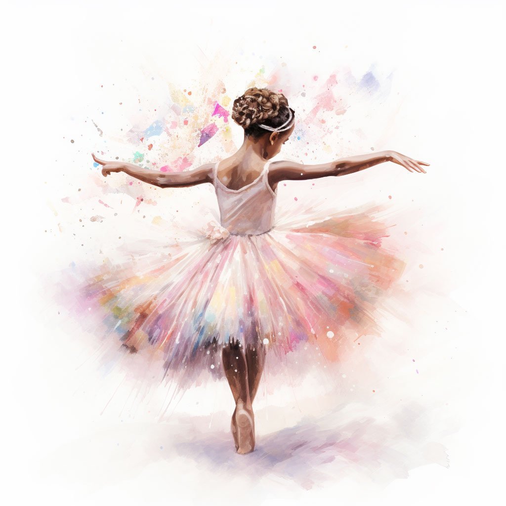 Primero, vamos a elegir los colores. Normalmente, los trajes de ballet son de colores claros como rosa, blanco o azul cielo. Pero lo genial de colorear es que puedes usar los colores que tú quieras. ¿Qué tal si pruebas con tu color favorito? ¡Imagina tu dibujo de la niña bailando ballet con un precioso vestido en tonos de arcoíris o incluso en negro con destellos plateados!