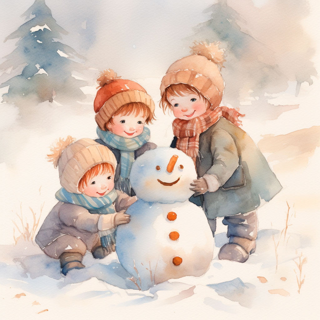 Colores Fríos y Cálidos: Para la nieve, usa diferentes tonos de azul y blanco para que parezca que brilla con la luz del invierno. Aunque la nieve es blanca, las sombras suelen ser azuladas. Luego, usa colores cálidos como rojos, naranjas y amarillos para la ropa de los niños, creando un bonito contraste.