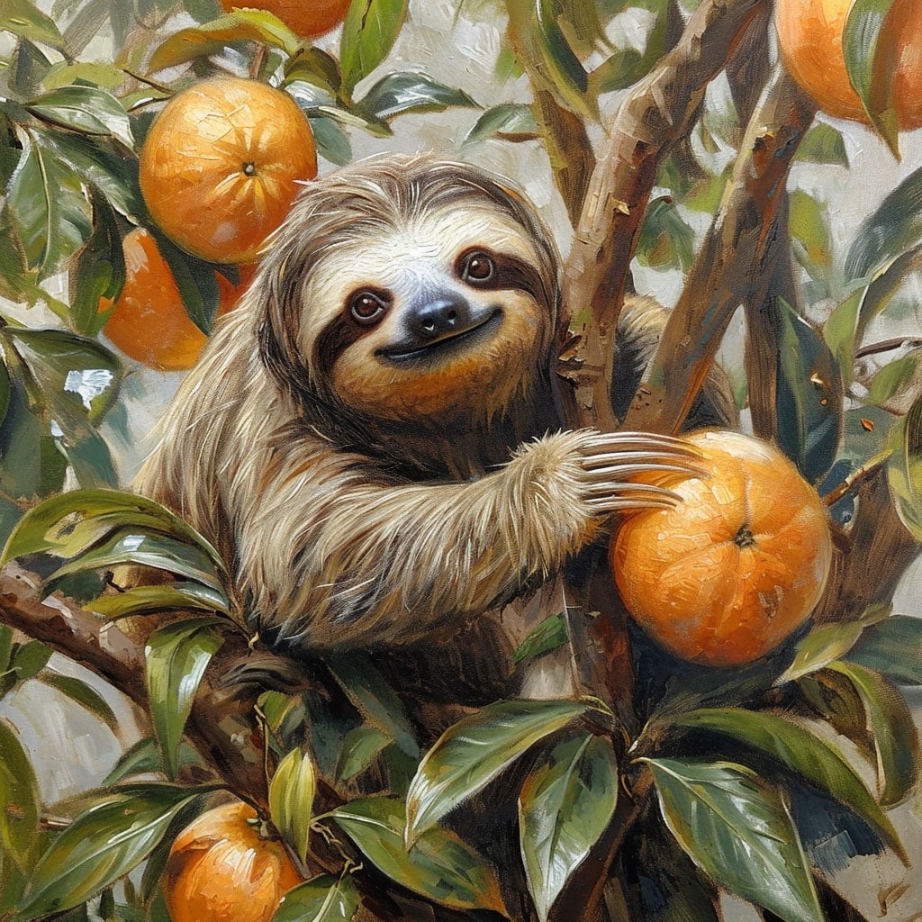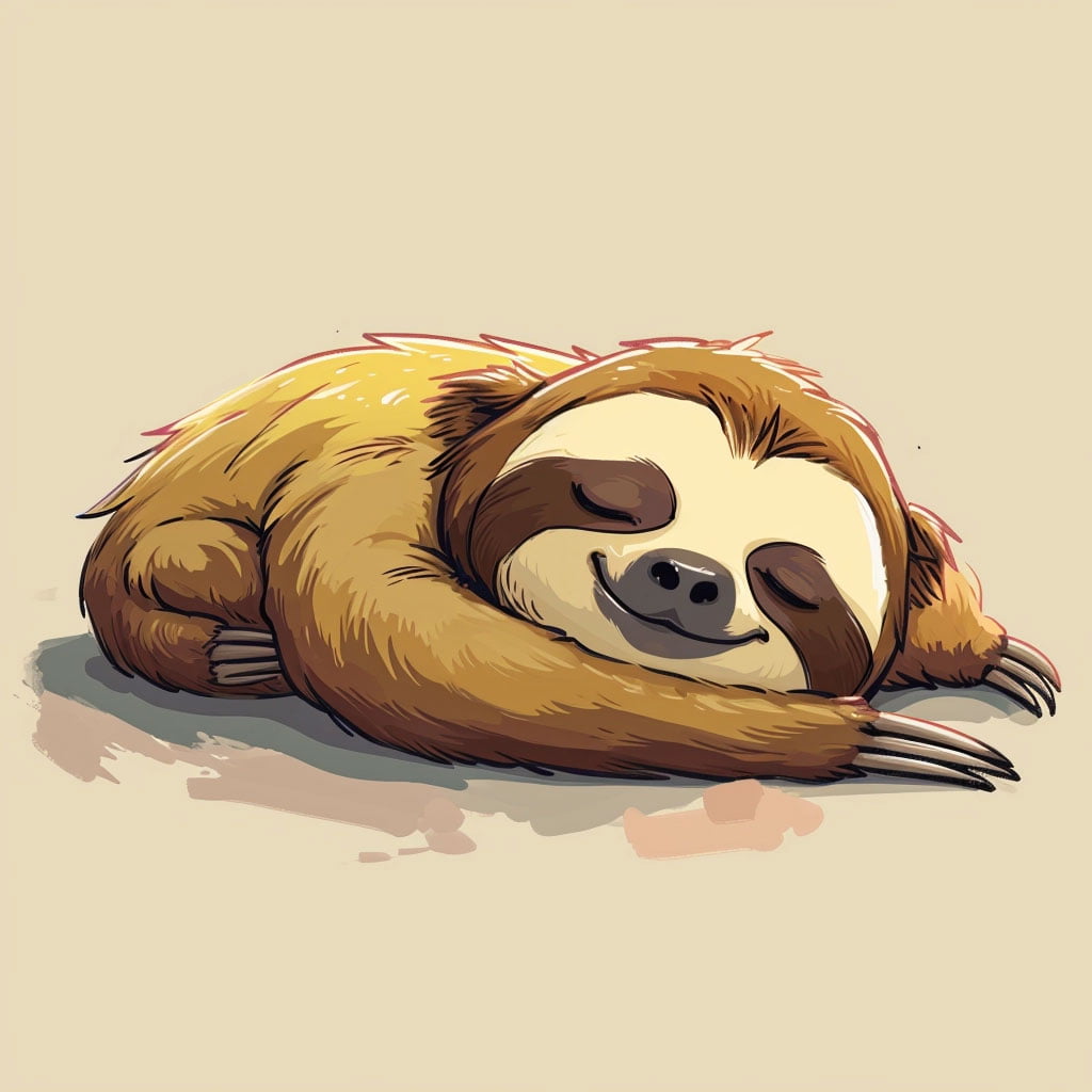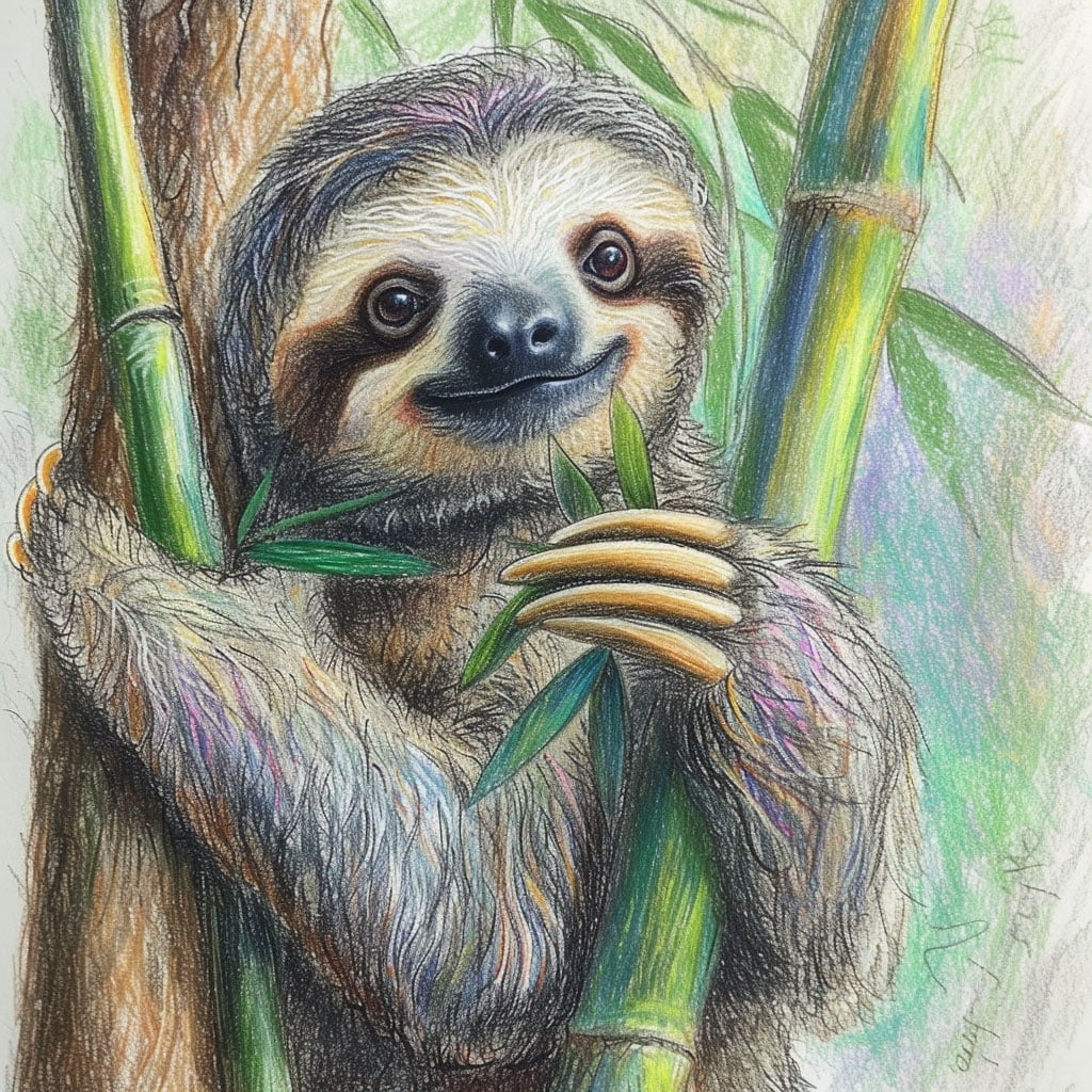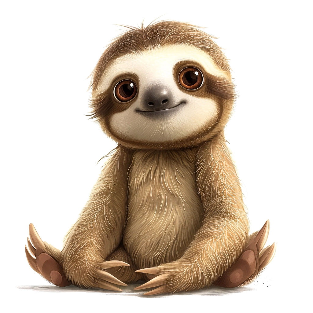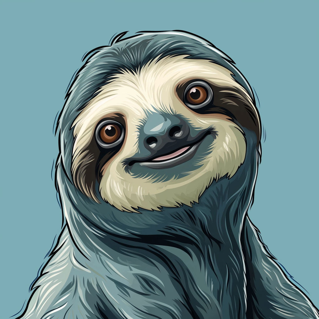 La cara del perezoso es expresiva, con grandes ojos que necesitan un toque de luz para capturar su mirada soñadora. No olvides sus características faciales como la nariz pequeña y la boca que, con una curva suave, puedes hacer que parezca sonreír. Utiliza colores más claros alrededor del rostro para destacarlo del resto del cuerpo.