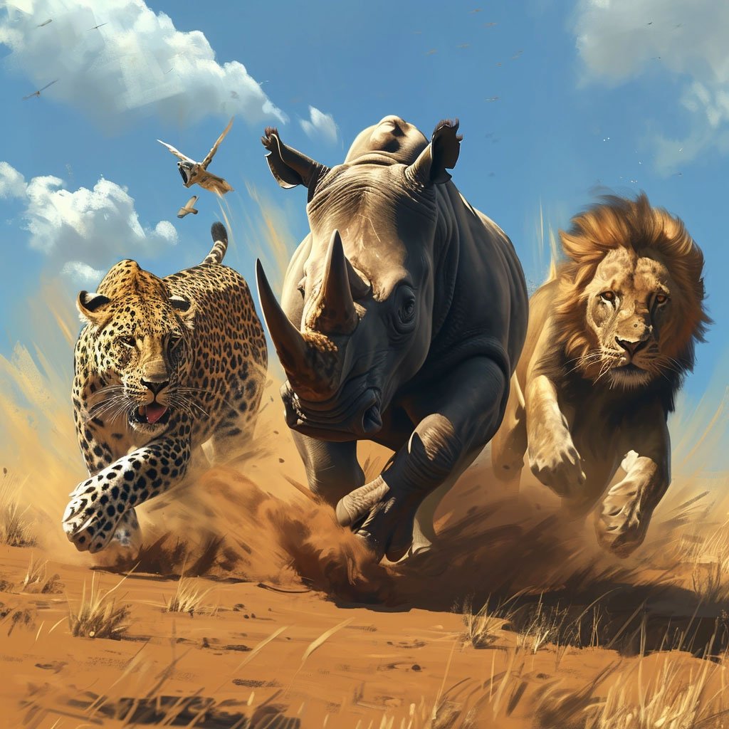 Depredadores: Aunque los rinocerontes adultos tienen pocos depredadores naturales debido a su tamaño y fuerza, los jóvenes pueden ser vulnerables a ataques de leones, hienas y cocodrilos. Sin embargo, la mayor amenaza para los rinocerontes es el ser humano, principalmente debido a la caza furtiva por sus cuernos.