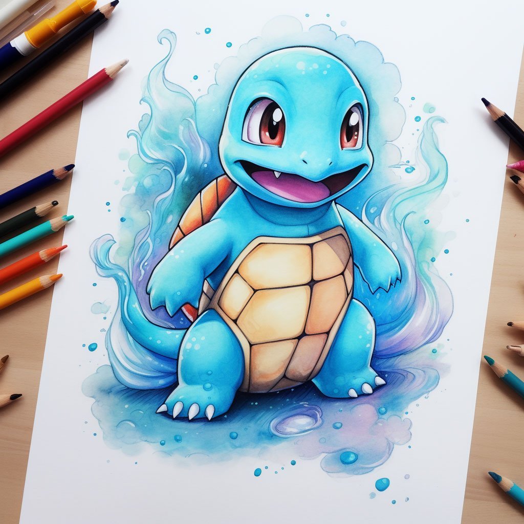 - Detalles con cuidado: Usa un lápiz bien afilado o un rotulador fino para los pequeños detalles como los ojos y la boca de Squirtle, ¡esos detalles dan vida a su expresión!