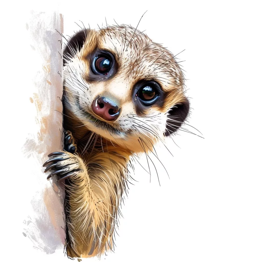 - Observa con atención la imagen del suricata. Fíjate en los diferentes tonos de pelaje, las marcas en su rostro y la textura del suelo.
