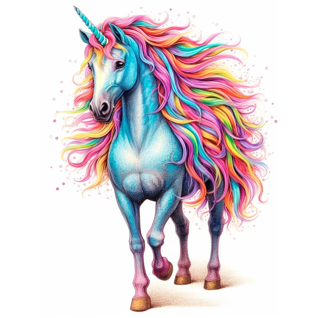 La crin y la cola: La crin y la cola son como mechones suaves y esponjosos. Puedes usar colores brillantes como rosa, azul, amarillo o verde. ¿Qué tal si haces un degradado de colores en la crin, empezando con rosa en las raíces y terminando en azul en las puntas? ¡Será como un arco iris en su melena!
