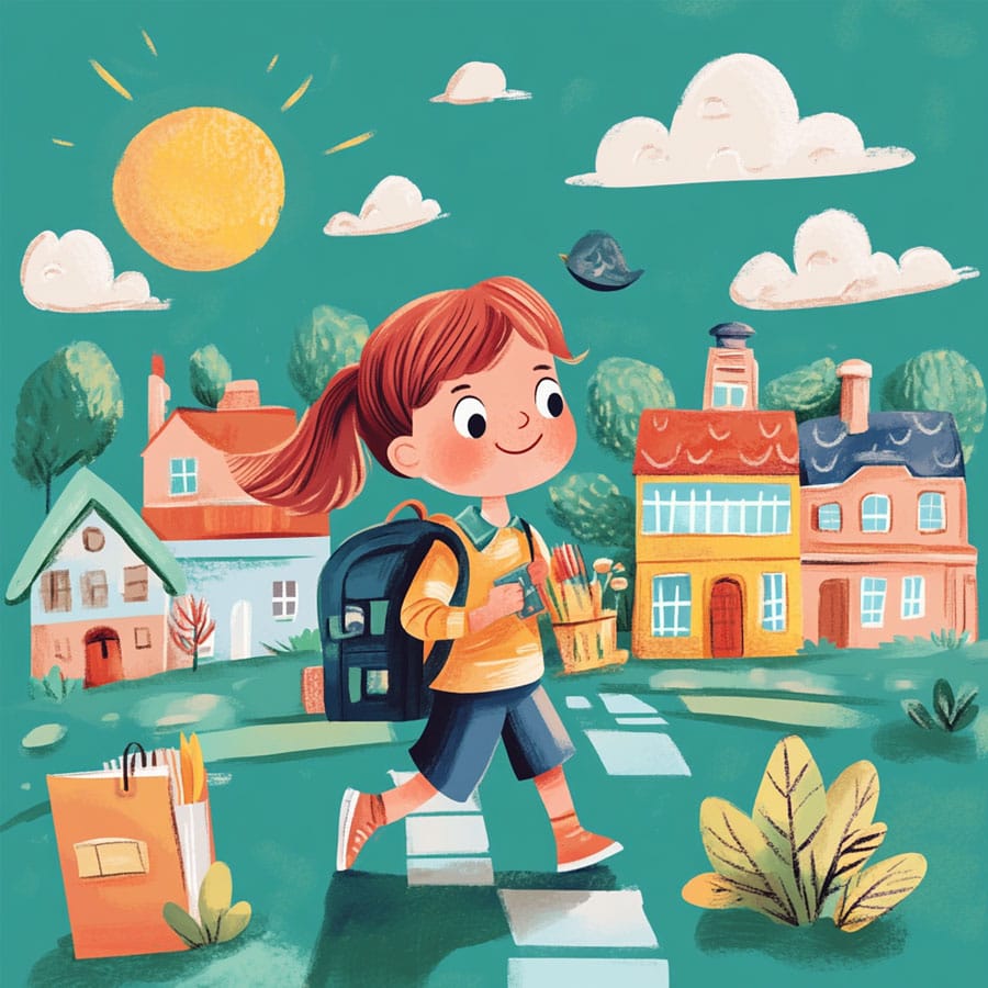 Imagina qué colores podrías usar para decorar la mochila de la niña: ¿será de colores brillantes, con dibujos o tal vez con tus personajes favoritos? También puedes darle vida a su ropa y los útiles escolares que lleva. ¡Con tu creatividad, esta escena de la vuelta al colegio puede volverse tan colorida como tú quieras!
