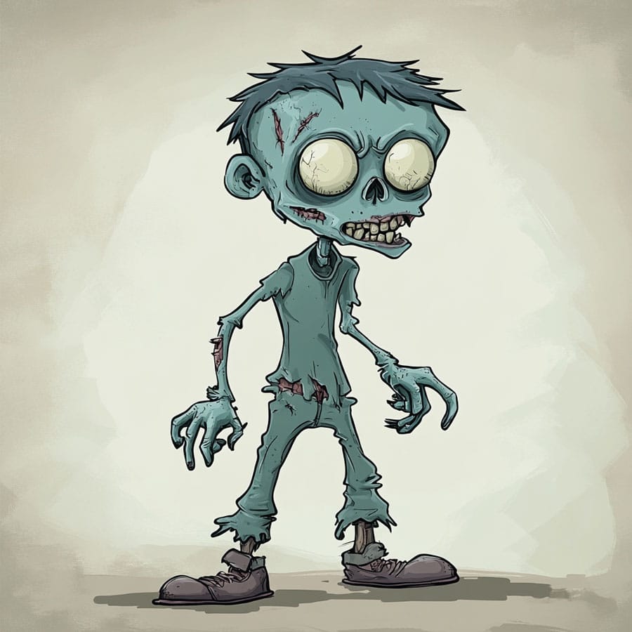 ¿Sabías que los zombies son criaturas de leyendas que han aparecido en historias de todo el mundo? Se cree que los zombies son personas que volvieron a la vida después de haber sido enterradas. Pero no te preocupes, ¡son solo personajes de ficción! En muchas películas y dibujos, los zombies suelen caminar muy lento y siempre parecen tener hambre, ¡sobre todo de cerebros!